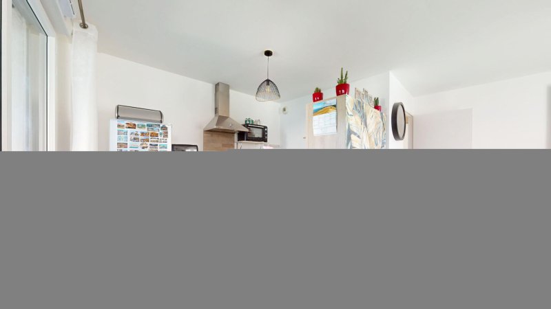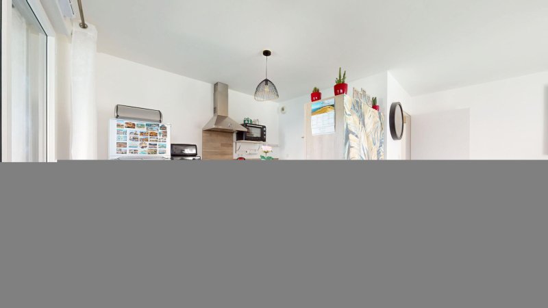 Concernant l'appartement, il se compose d'un grand séjour, baigné de lumière grâce aux larges baies vitrées, qui s'ouvrent sur un agréable balcon, idéal pour profiter des journées ensoleillées. Il dispose également d'une cuisine aménagée semi-ouverte, de deux chambres, d'une salle de bain et de toilettes séparées.