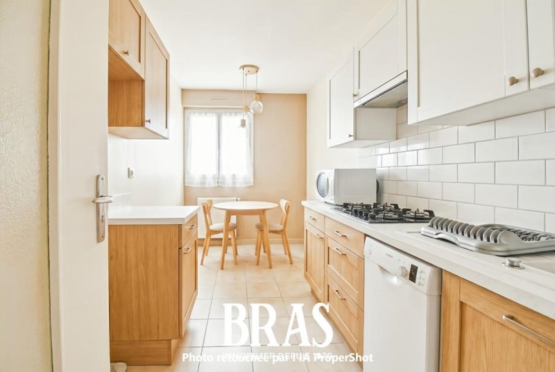 Entrée avec rangements, cuisine indépendante aménagée, salon lumineux avec vue dégagée, trois chambres, dégagement avec placards, salle de bains et WC séparés.