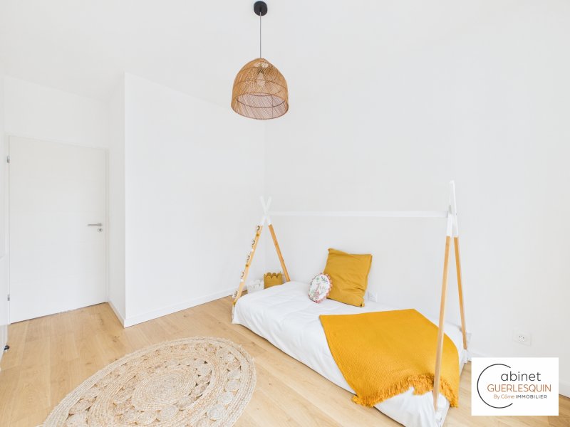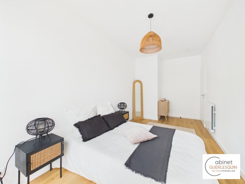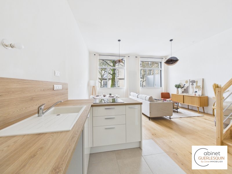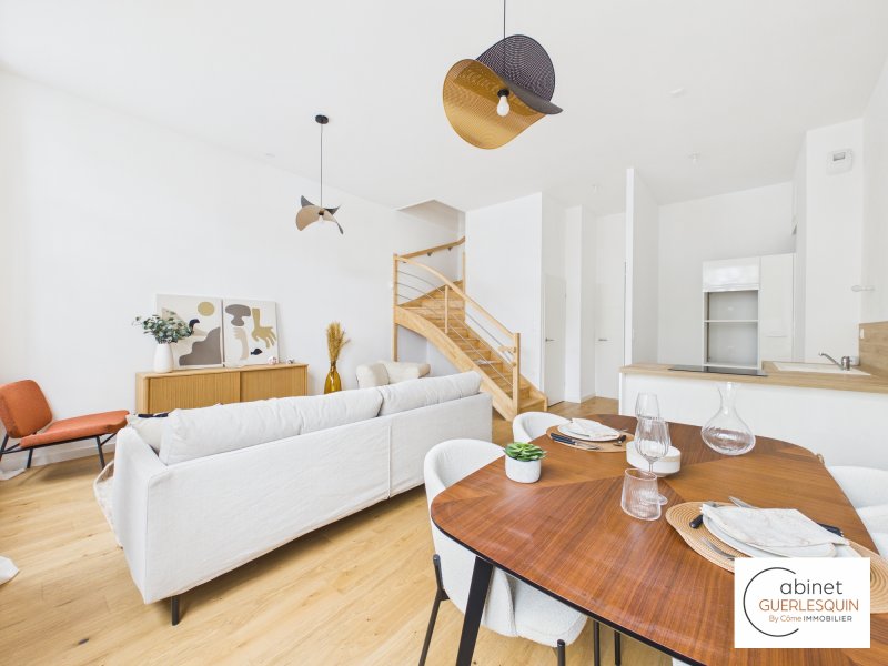 Au coeur de l'Île de Nantes, dans l'un des secteurs les plus prisés et innovants de la ville, découvrez ce splendide appartement T5 en duplex, neuf et jamais habité, situé dans la résidence contemporaine de standing Faubourg 14, au 14 boulevard Victor Hugo. Développant 93,95 m2 habitables, ce bien rare séduit immédiatement par son entrée indépendante, lui conférant un véritable esprit maison, ainsi que par ses volumes généreux et sa remarquable hauteur sous plafond. Des espaces pensés pour le confort et la lumière Dès le premier niveau, une élégante entrée avec rangements et espace télétravail / bureau mène à une superbe pièce de vie baignée de lumière, prolongée par une terrasse de 16 m2 idéalement exposée Sud-Ouest, véritable prolongement du séjour pour des moments privilégiés en extérieur. Une cuisine ouverte complète cet espace de réception aux lignes contemporaines. WC indépendant. À l'étage, l'espace nuit propose : Trois chambres confortables, dont une avec placard Une salle de bains raffinée Un WC séparé Une buanderie indépendante, rare et particulièrement fonctionnelle Prestations & éléments de confort Résidence neuve à l'architecture moderne Appartement jamais occupé Accès privatif esprit maison de ville Superbe luminosité et exposition optimale Deux places de stationnement en sous-sol sécurisé Local vélo Un emplacement premium À proximité immédiate des commerces, des transports, des promenades en bord de Loire et du centre-ville, le quartier République offre un cadre de vie dynamique, moderne et recherché, alliant qualité de vie et valorisation patrimoniale. Le prix indiqué est TTC. Les honoraires du cabinet sont à la charge du vendeur. Les frais de notaires sont réduits et estimés à : 8.300 euros. Visite virtuelle disponible sur demande. N'hésitez pas à nous contacter pour plus d'informations au 02.40.48.99.54.