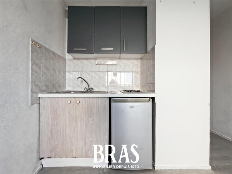 L'appartement comprend une entrée avec placard, une pièce à vivre avec un coin kitchenette aménagé, un coin nuit séparé et une salle d'eau avec WC.