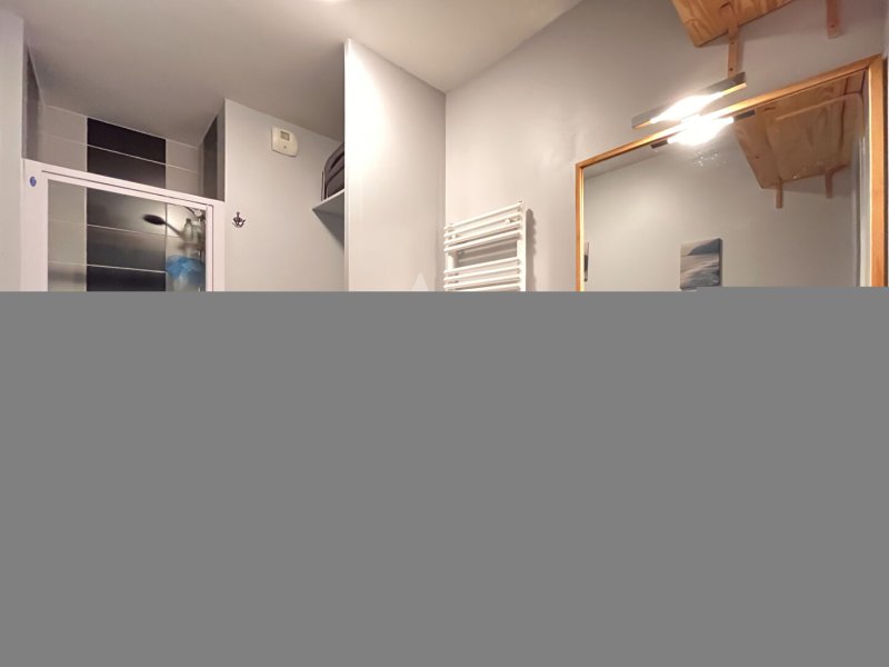 Côté nuit, vous trouverez une grande chambre avec placard et une salle de bains avec WC.