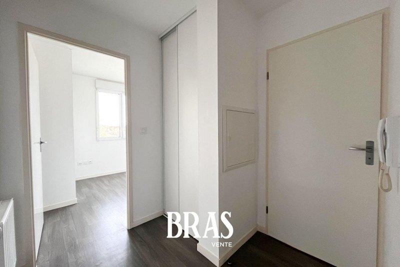 BOTTIERE CHESNAIE - Dans une résidence sécurisée de 2015 et labellisée BBC, charmant appartement T2 de 45 m² au 1er étage. L'appartement comprend une entrée avec placard, un séjour donnant sur un balcon de 9m2 exposé SUD-OUEST avec une cuisine aménagée et équipée (plaques, hotte, deux points d'eau), une chambre avec placard, une salle de bains et des WC séparés.