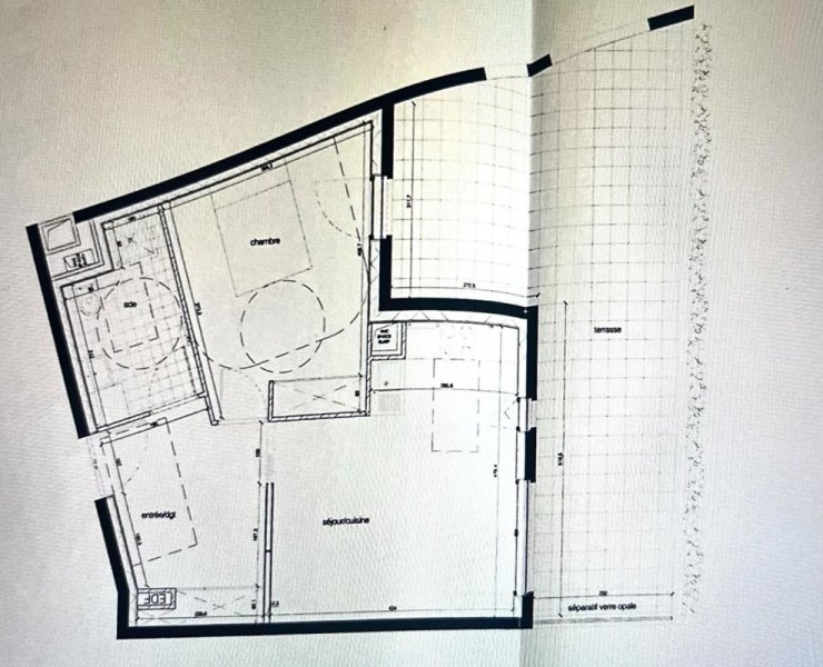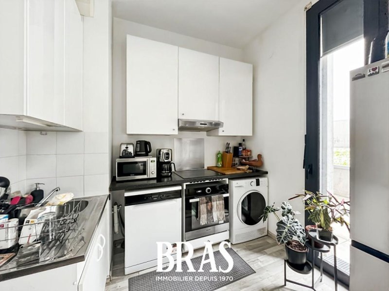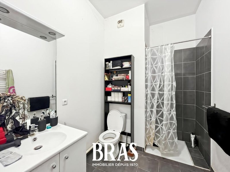 Il comprend une belle entrée avec placard, un séjour avec un coin cuisine aménagée donnant sur une terrasse de 31m2 (cour intérieure), une salle d'eau avec WC, une chambre avec placard.
