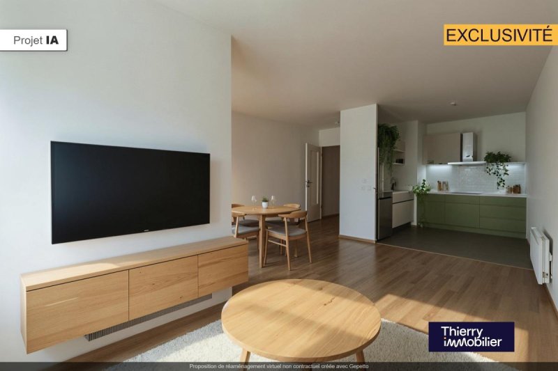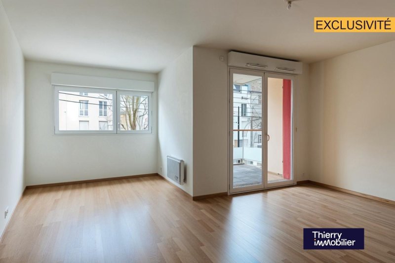 Il se compose d'une entrée avec placard desservant une belle pièce de vie de plus de 30m² avec cuisine ouverte, le tout donnant sur un balcon exposé SUD-OUEST.