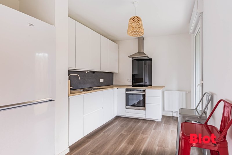 Son espace de vie, avec cuisine ouverte, profite d'une belle luminosité et s'ouvre directement sur une terrasse et un jardinet, exposés Sud !