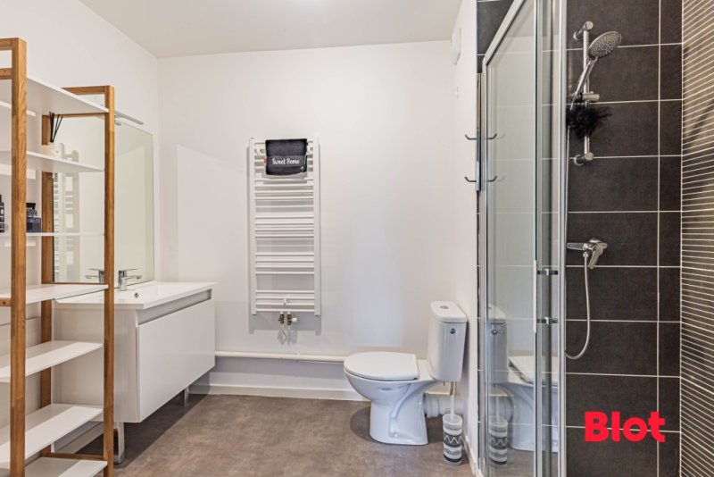 Côté nuit, l'appartement dispose de deux chambres, d'une salle d'eau fonctionnelle avec WC, et offre ainsi un agencement parfaitement adapté à la vie de couple, de famille ou encore d'investissement.