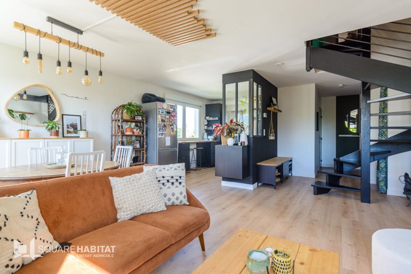 Un vaste salon-séjour convivial, ouvert sur une cuisine moderne parfaitement équipée. Une arrière-cuisine pratique pour optimiser le rangement