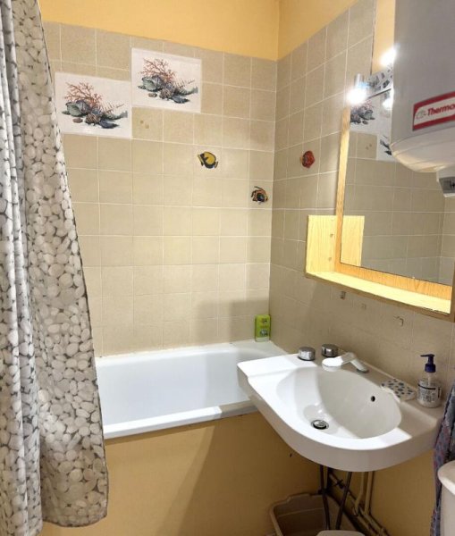 Idéalement placé, cet appartement se compose d'une entrée, un coin cabine avec lits superposés, une salle de bains, une chambre avec placard, une kitchenette ouverte sur le séjour et un balcon exposé sud offrant une jolie vue.
