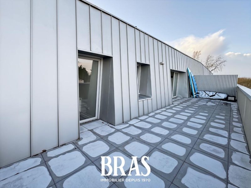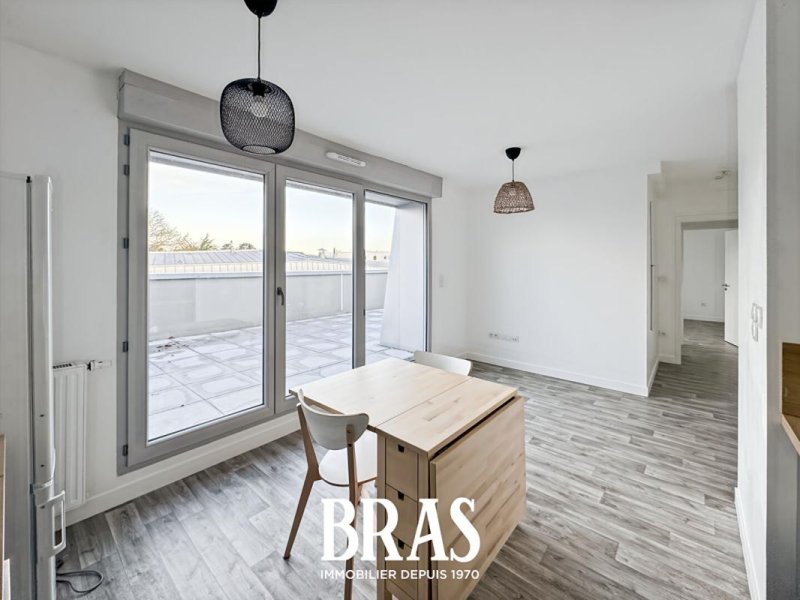 EXCLUSIVITÉ BRAS IMMOBILIER - Bouguenais Les Couëts - Secteur Grande Ouche / La Jaguère. En second rideau, nous vous proposons à l'achat, un bel appartement niché au dernier étage d'un petit immeuble de 3 étages entouré de verdure. Appartement de type T2 d'environ 40 m² avec une magnifique terrasse de 30 m², le tout exposé OUEST. Logement comprenant une entrée avec un dégagement desservant l'espace de vie avec sa cuisine aménagée et équipée, un cellier (ou cave), une salle d'eau avec WC, et une belle chambre.