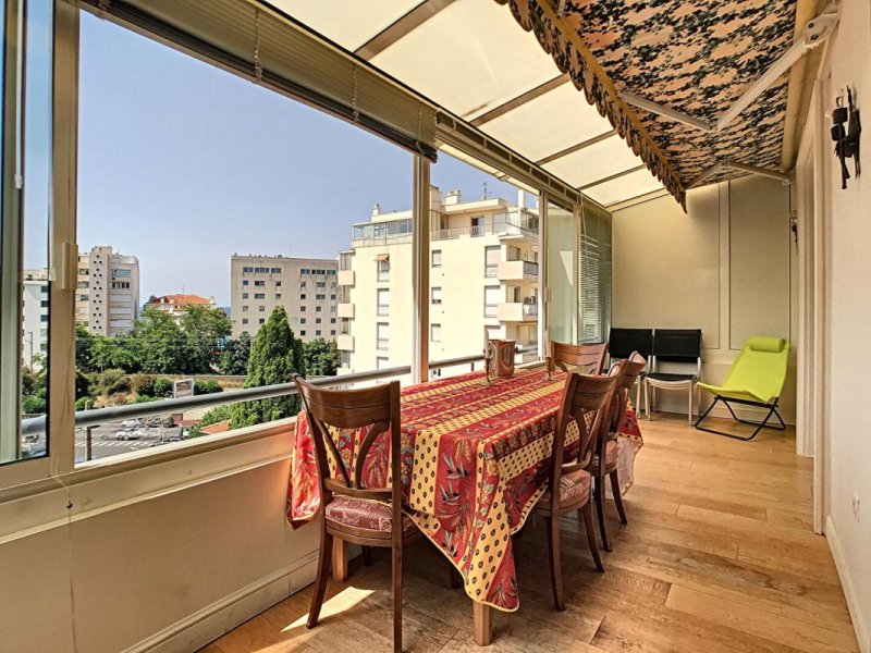 Au 5e étage d'une copropriété bien entretenue, il offre une belle luminosité grâce à son exposition sud-ouest et une terrasse de 13 m² fermée en veranda et climatisée idéale pour profiter des déjeuners ensoleillés en hiver .