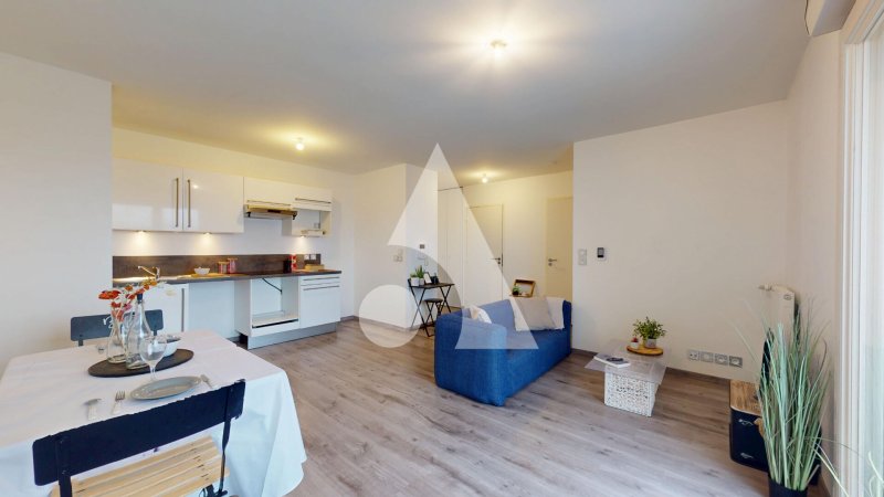 A proximité de toutes les commodités, ce bien comprend une entrée avec placard qui mène à une belle pièce de vie avec une cuisine aménagée et équipée donnant accès au balcon de 5.2 m².