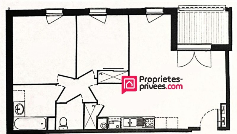 Cet appartement offre un beau balcon sans vis-à-vis et est composé d'une grande pièce de vie de 30 m² environ, de deux chambres, d'une salle de bains et d'un wc séparé.