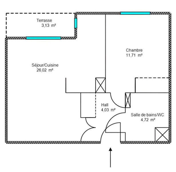 Un séjour lumineux donnant accès à une petite terrasse de 3 m²