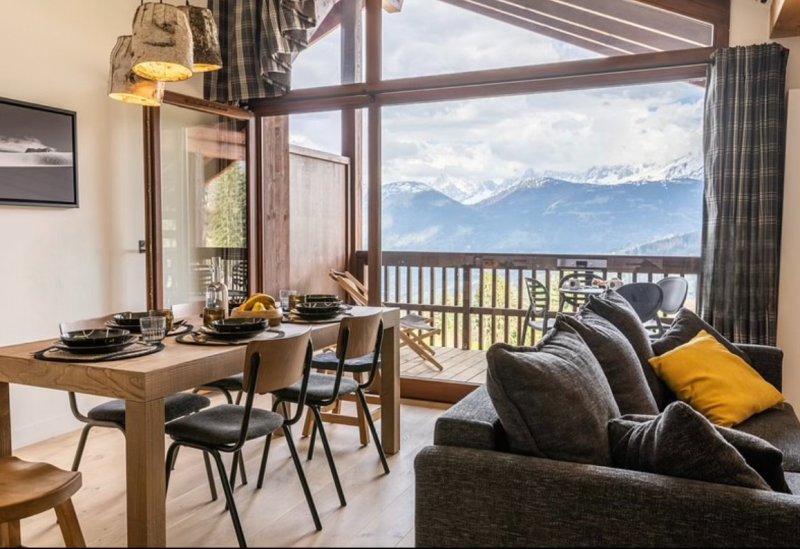 L'appartement bénéficie d'une grande Terrasse avec une vue panoramique sur la chaîne du Mont-Blanc.