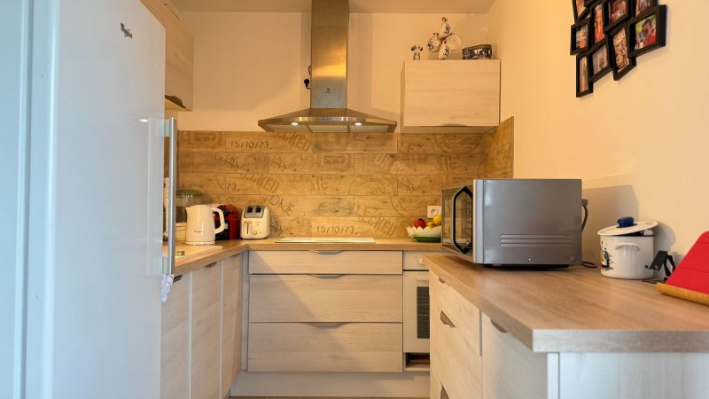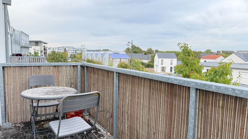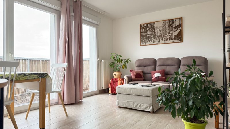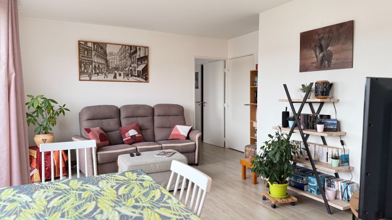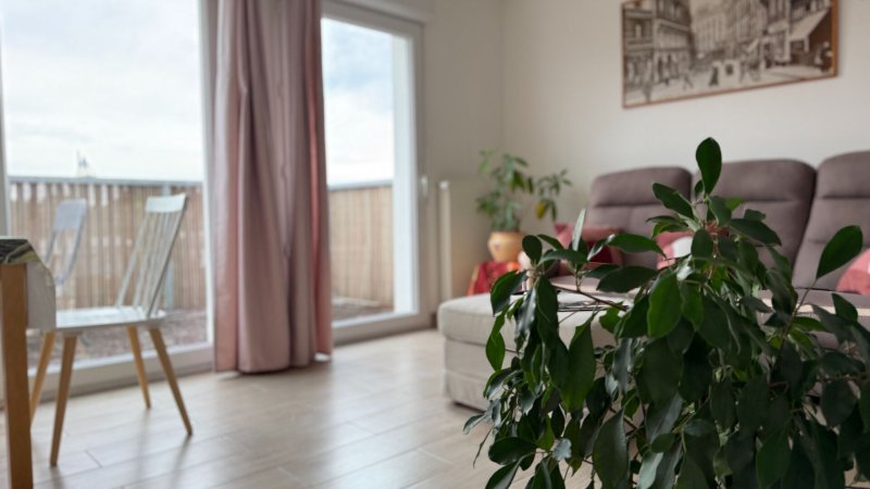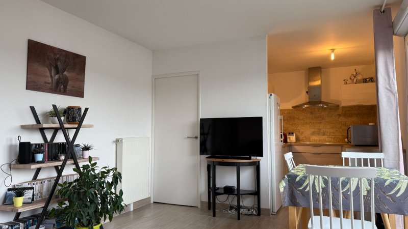 - Une pièce de vie lumineuse, ouverte sur une cuisine fonctionnelle et prolongée par un balcon.