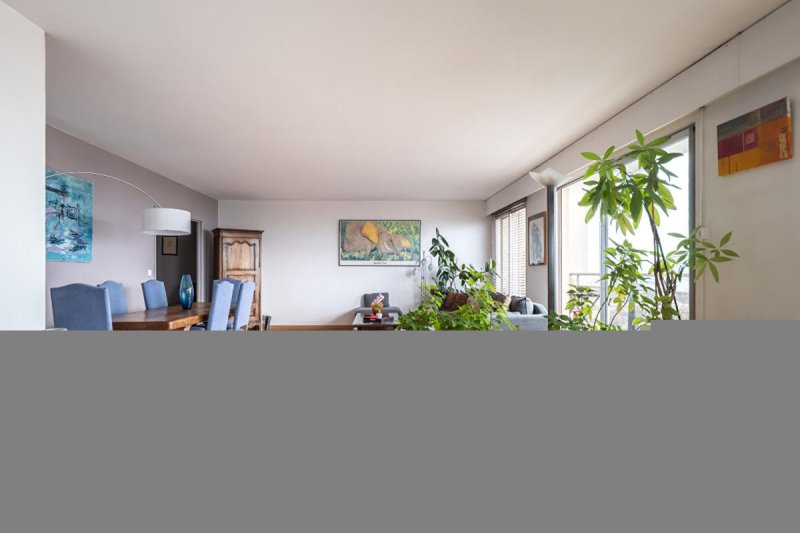 Dès l'entrée, le panorama est saisissant : une vue totalement dégagée sur tout Paris, rare et spectaculaire, qui confère à ce bien un caractère véritablement unique. Grâce à son exposition plein sud et à ses larges baies vitrées, l'appartement est baigné de lumière du matin au soir, offrant une atmosphère chaleureuse et apaisante.