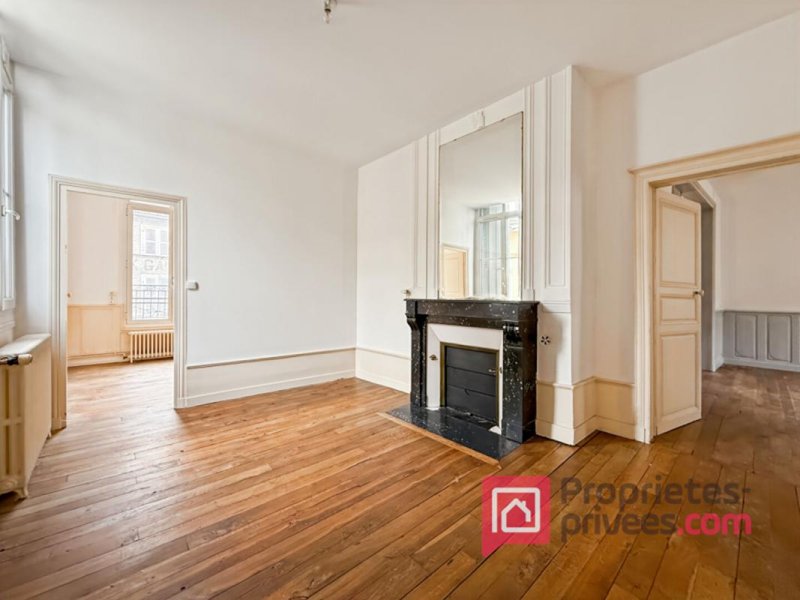 A l'étage, un bel appartement de 100 m² offre tout le charme de l'ancien avec son parquet et ses cheminées. Il se compose de deux chambres, d'un salon, d'une salle à manger, d'une cuisine indépendante et d'une salle de bains.