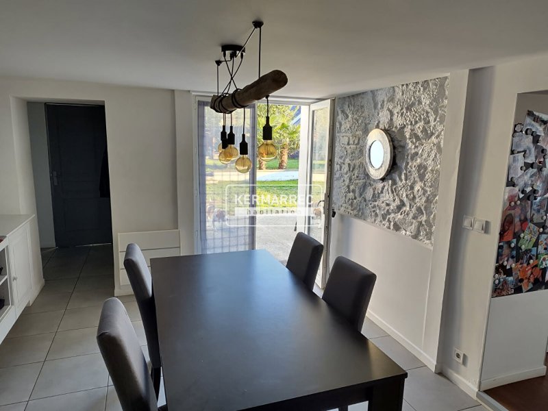 A l'extérieur, jardin clos et arboré avec terrasse exposée plein sud.