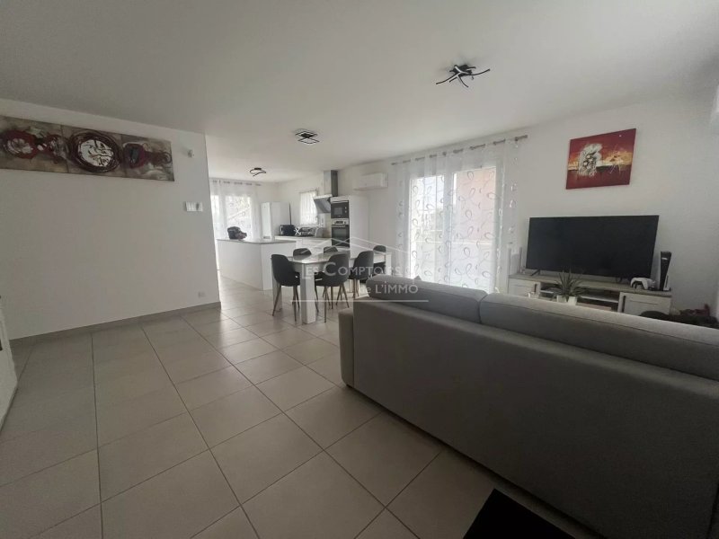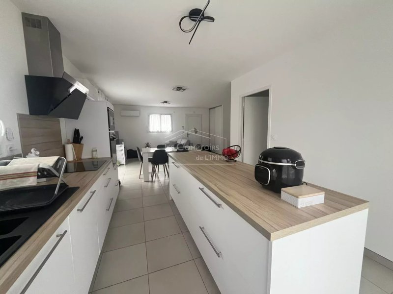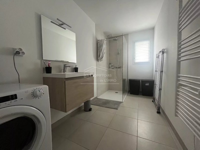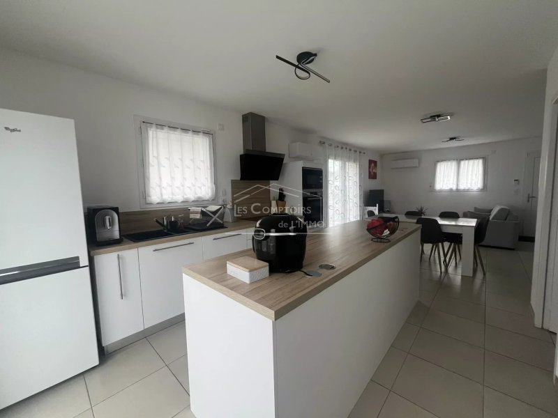 Entrée sur salon/séjour, cuisine ouverte A/E (plaque, hotte, four, micro-onde, lave-vaisselle), buanderie, un couloir desservant une salle d'eau, des toilettes, quatre chambres dont une suite parentale avec dressing et salle d'eau privative.