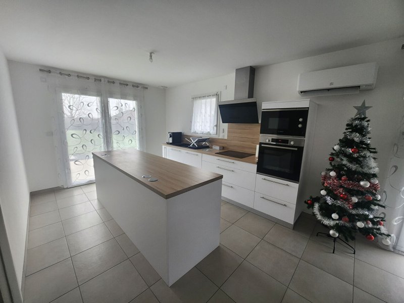 Joli plain-pied avec pièce de vie lumineuse, cuisine aménagée et équipée donnant sur la terrasse. Quatre chambres, dont une suite parentale.
