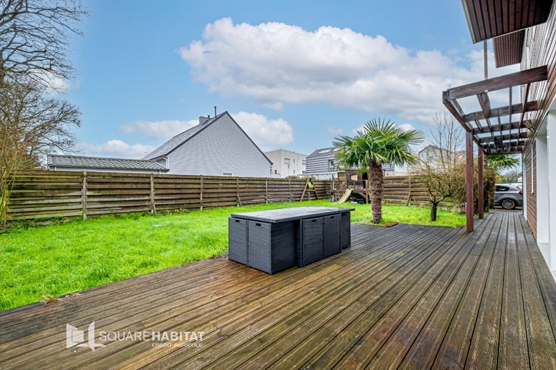 Bien familial apportant vie de plain-pied avec une grande chambre, dressing et une salle d'eau.A l'étage, l'espace enfants est composé de deux chambres et un bureau (pouvant être une chambre) , une salle de bains avec douche et un WC. Terrain d'environ 500 M² avec garage indépendant de 32m². GARANTIE REVENTE 7 ANS OFFERTE.