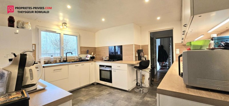 Romuald Theysgeur vous présente une belle longère de 100 m² avec une maisonnette et un double garage sur son terrain de 5160 m², sans voisinage.