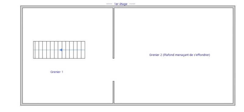 ATTENTION : Effondrement partiel de la toiture du fait de la démolition d'une cheminée. L'eau passant à travers la toiture non étanche a imprégné la charpente poussant sur les maçonneries de la façade. Façade présentant des fissures verticales descendant depuis l'arase supérieure. Ce bien s'adresse donc prioritairement à des professionnels du bâtiment.