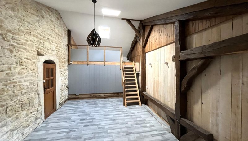A l'étage, trois chambres, ainsi qu'une superbe pièce à l'ambiance chaleureuse, mariant pierres et bois, avec mezzanine ? un véritable coup de coeur qui apporte beaucoup de cachet à l'ensemble.