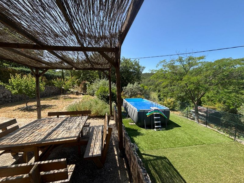 A l'extérieur, vous profiterez d'une grande terrasse, d'une piscine hors sol, le tout sur un superbe terrain arboré de 4440m².