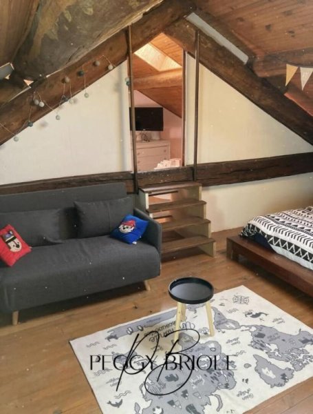 Au premier étage, se trouve une agréable pièce de vie comprenant une cuisine aménagée et équipée, ainsi qu'un espace salon bénéficiant de deux fenêtres apportant une belle luminosité. La pièce est également équipée d'un poêle à bois, apportant un confort de chauffe appréciable. A ce niveau, vous trouverez aussi un second WC indépendant et une deuxième salle d'eau.