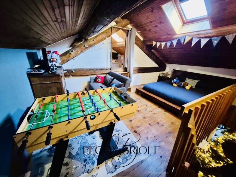 A l'étage supérieur, sous une mezzanine à hauteur d'homme, se trouvent deux chambres. Elles sont actuellement disposées en enfilade, l'une étant accessible par l'autre via un petit escalier intérieur. Chaque chambre dispose de son propre VELUX, permettant, si besoin, d'envisager une séparation complète des espaces.