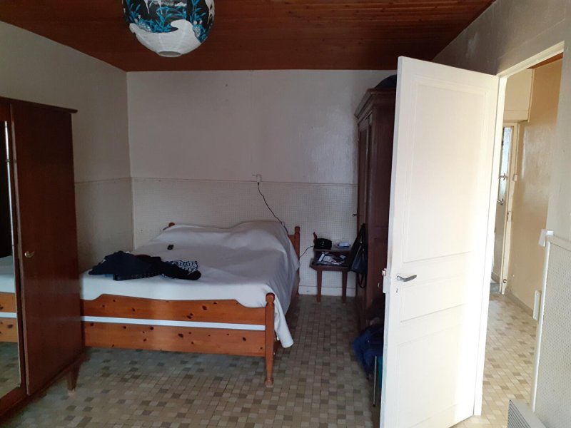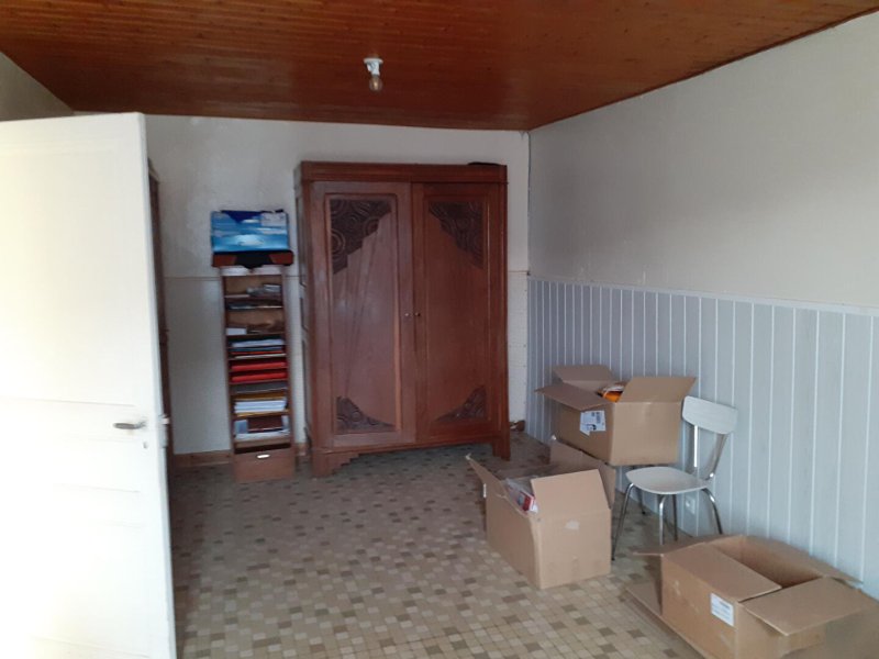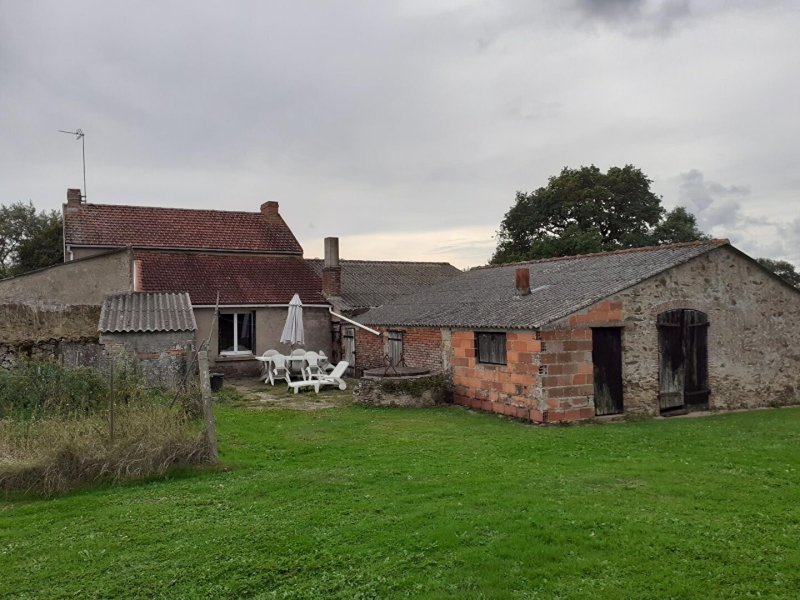 Elle se compose d'une arrière-cuisine donnant sur une salle d'eau avec WC, d'une cuisine principale, ainsi que d'un couloir desservant deux chambres. À l'étage, une grande pièce à aménager offre un beau potentiel pour créer une suite parentale, un bureau ou un espace de loisirs selon vos envies. En complément, la propriété dispose d'une cave, de dépendances et d'une ancienne écurie, idéales pour du stockage, un atelier ou un futur projet.