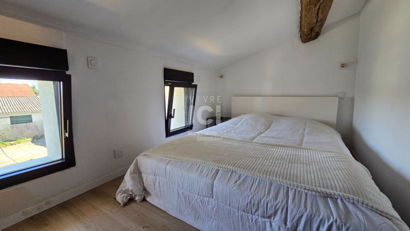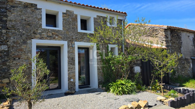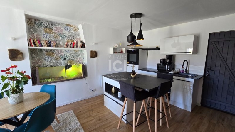 LE MIGRON. Coup de coeur pour cette maison en pierre rénovée en 2024 ! Séjour-salon avec cuisine ouverte aménagée équipée, cellier, wc. A l'étage : palier desservant deux chambres, salle de bains (baignoire et douche italienne), wc. Grande dépendance et garage.