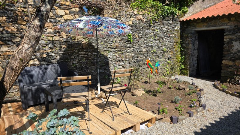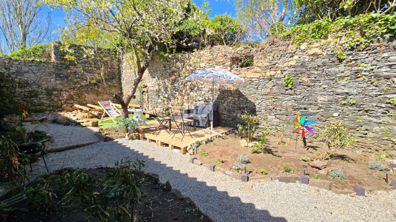 Agréable jardin sans vis à vis entouré de murs de pierre
