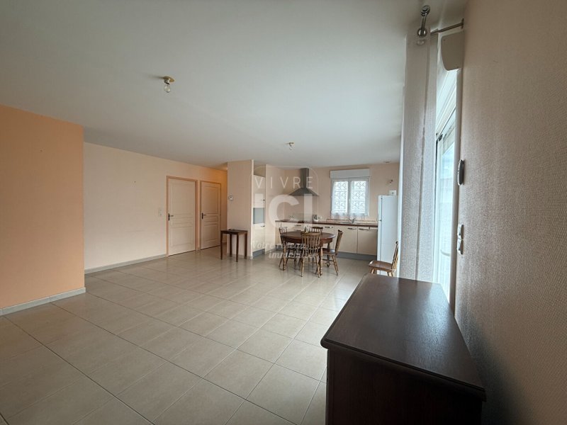 Elle offre un salon-séjour lumineux, une cuisine aménagée et équipée ainsi que deux chambres avec placard. Vous profiterez également d'une salle d'eau, d'un WC indépendant et d'un cellier fonctionnel.