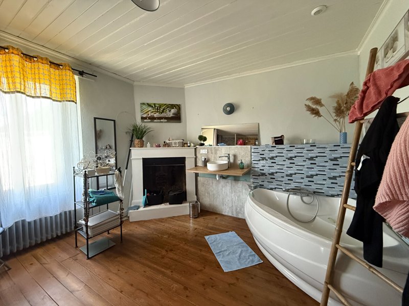 * à l'étage : deux grandes chambres sur parquet, une salle de bains avec dressing (pouvant servir de chambre).