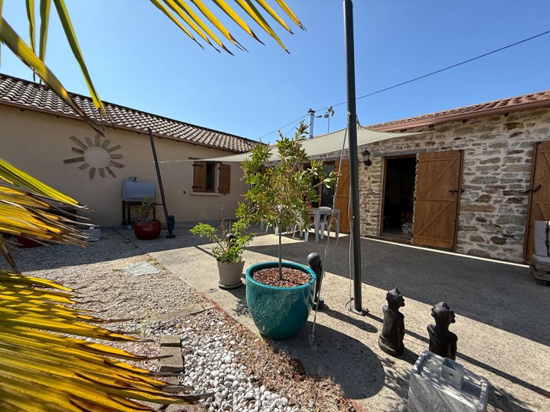 * Exclusivité chez Vivre Ici Frossay Immobilier ! * Située proche des commoditées, maison de plain-pied pleine de charme. Elle se compose d'un séjour chaleureux agrémenté d'un poêle à bois, d'une cuisine aménagée et équipée, ainsi que d'un cellier. La partie nuit comprend 3 chambres, dont une avec sa salle d'eau privative, une salle de bains indépendante et un WC séparé. Un grand garage de 71 m² complète l'ensemble, idéal pour stationner, bricoler ou stocker. À l'extérieur, vous profiterez d'une belle terrasse et d'un jardin arboré avec un puits. Avec le poêle à bois, la dépense énergétique réelle n'est pas représentative du DPE.