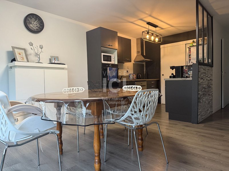 Elle se compose d'une entrée ouvrant sur une agréable pièce de vie lumineuse avec cuisine moderne, aménagée et équipée, idéale pour recevoir et partager des moments conviviaux. Un cellier attenant vient compléter cet espace pratique.