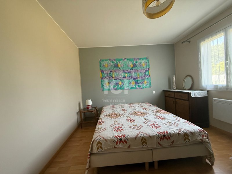 La maison principale, de plain-pied, offre une belle pièce de vie lumineuse avec cheminée insert, une cuisine récente aménagée et équipée, un cellier , 4 chambres, un grand bureau pouvant convenir à une activité professionnelle ou à une salle de jeux, une salle de bains, un WC indépendant et un garage.