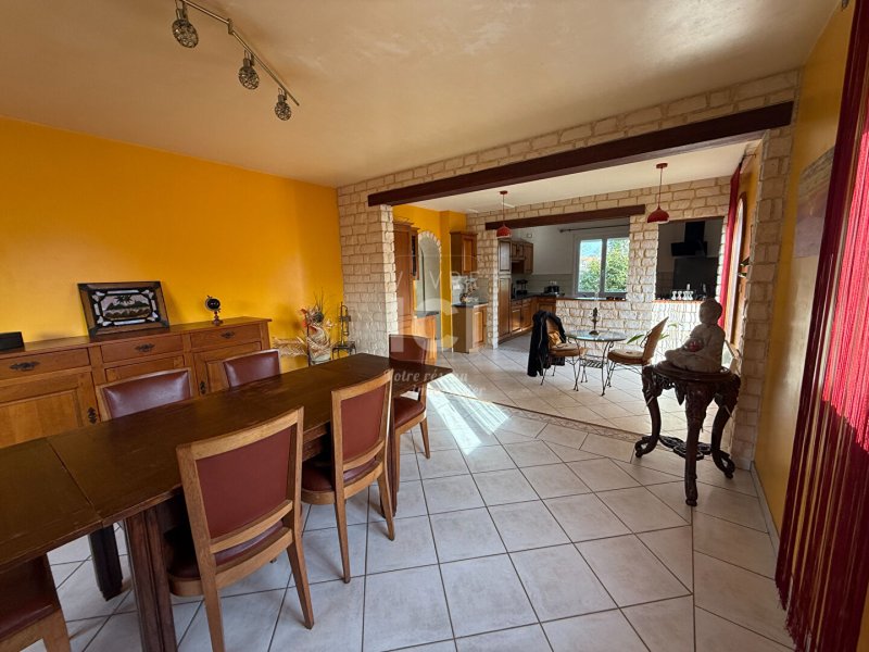 Dans un bel environnement, à quelques pas du bourg de Frossay et des commodités, maison offrant : une entrée, un salon lumineux avec une cheminée ouverte et une mezzanine, une cuisine aménagée et équipée, une salle à manger, 3 chambres, une salle de bains, une buanderie, un dégagement, un WC.