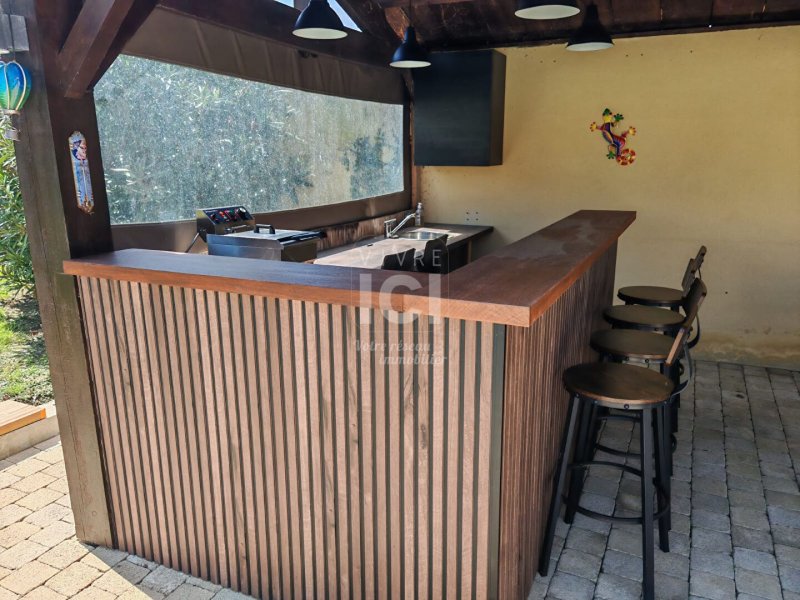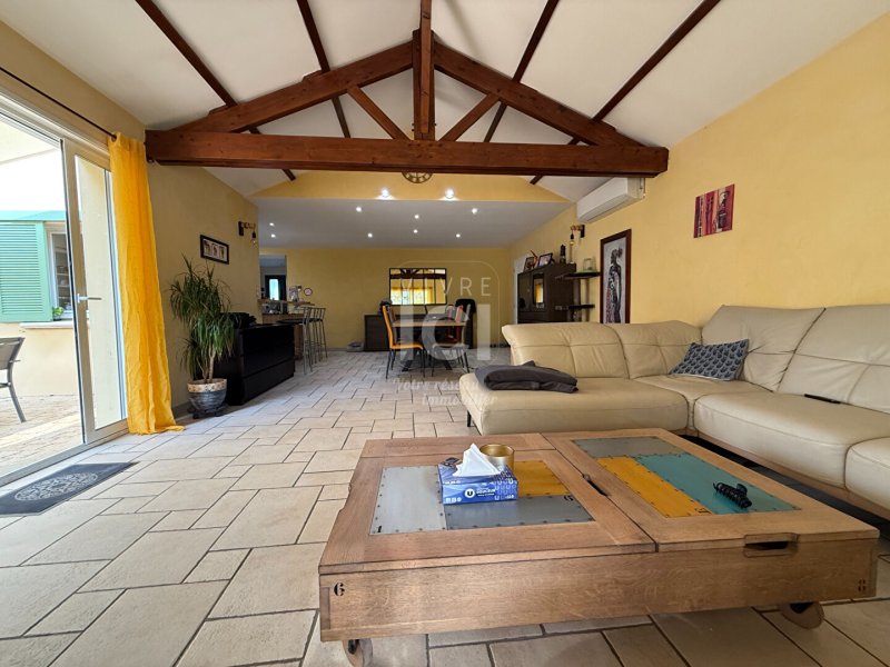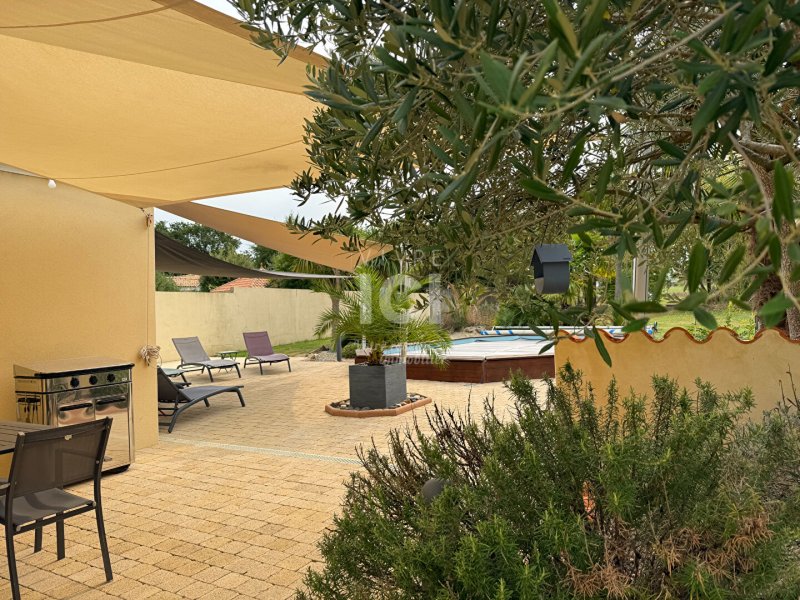 Côté extérieur, la maison dispose d'une grande terrasse d'environ 150 m², parfaite pour profiter des beaux jours. Une piscine semi-enterrée, chauffée construite permet de se rafraîchir en été. Il y a également un puits.
