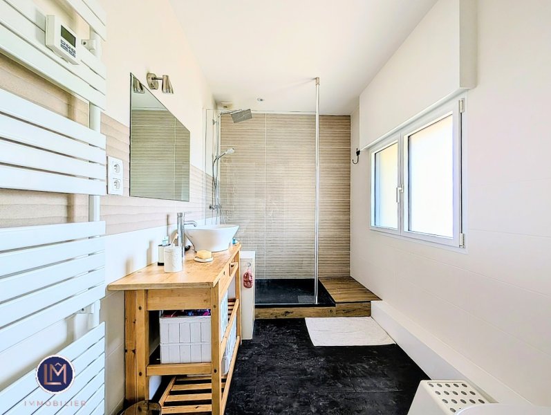 A l'étage: trois chambres dont une grande suite parentale offrant une chambre de 13m² + dressing + salle d'eau privative.