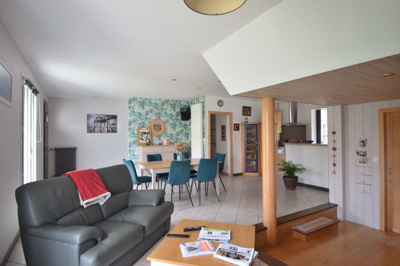 ANP IMMOBILIER VOUS PROPOSE EN EXCLUSIVITE A 8 km au Sud de Geneston sur la commune de SAINT PHILBERT DE BOUAINE, à deux pas du bourg dans une impasse avec un esprit 'petit village', cette agréable maison traditionnelle (construction parpaing avec ITE et bardage bois) de plain-pied édifiée en 1971 comprenant un très bel espace à vivre d'environ 65 m2 (salon-séjour, cuisine A/E et véranda), une partie nuit disposant de deux chambres (11 m2 chacune), WC et une salle d'eau ; un bureau complète cet ensemble avec au-dessus une 3ème chambre sous combles. Avec un accès par l'extérieur, nous retrouvons une grande buanderie de 15 m2 et un garage double de 55 m2 sur un terrain arboré et clos de 1047 m2 - Maison en très bon état d'entretien : PAC (2009), Fenêtres alu (2010), ITE avec bardage (2022) ect - Classe énergie D et Classe climat B - Prix de vente 234 500 EUR dont 5.63% TTC d'honoraires charge acquéreur (Prix 222 000 EUR hors honoraires).
