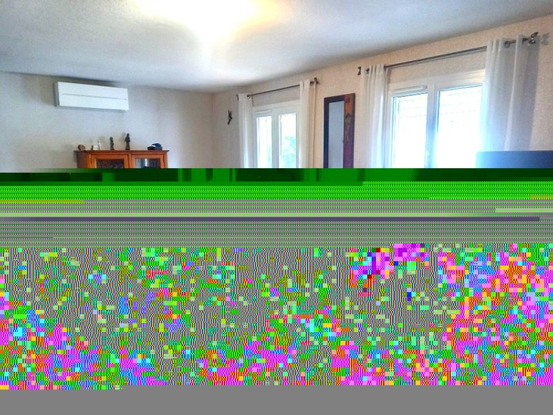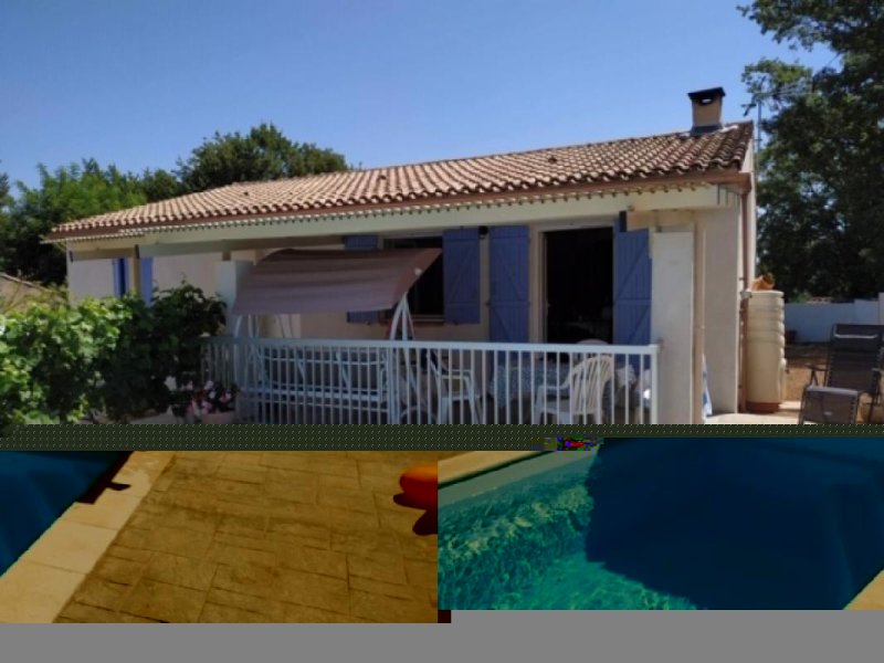 Villa de plain pied 100 m2 comprenant séjour avec cheminée et climatisation réversible, cuisine ouverte, aménagée et équipée, cellier attenant, trois chambres climatisées, salle d'eau, 2 WC, véranda, grand garage avec 2 portes électriques, auvent bioclimatique, adoucisseur d'eau, menuiseries PVC double vitrage, piscine polyester, filtration au sel, portail coulissant électrique, et portillon, sur 564 m2 de jardin clôturé.