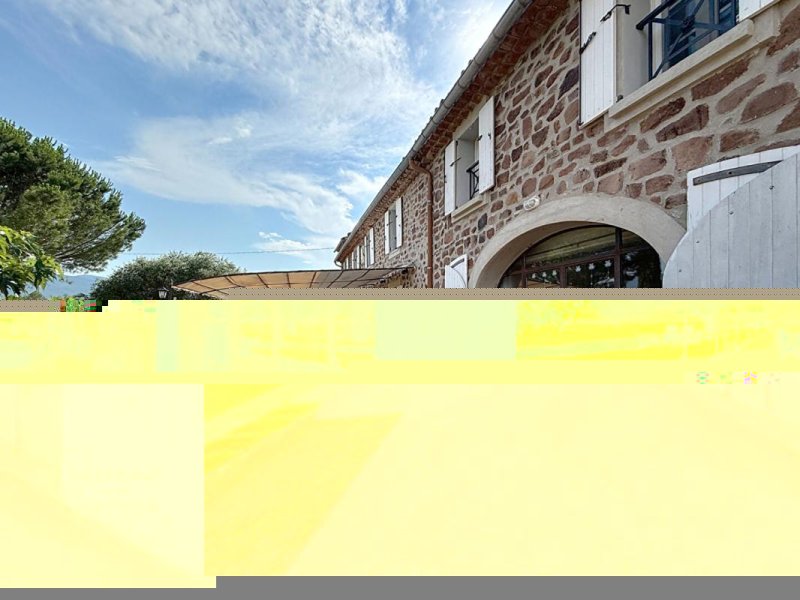 La bastide offre de magnifiques volumes : un vaste séjour de 70 m² avec de superbes baies vitrées en ferronnerie donnant sur une terrasse avec magnifique vue sur le Massif des Maures, une cuisine indépendante équipée de 31 m², un salon, une salle de projection attenante, ainsi qu'une véranda.