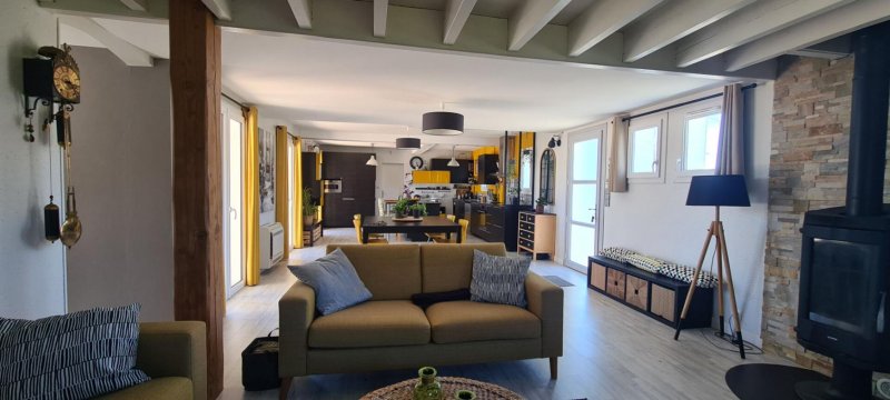 Le système de chauffage est assuré par de l'aérothermie complétée par un poêle à bois garantissant une consommation énergétique maitrisée.