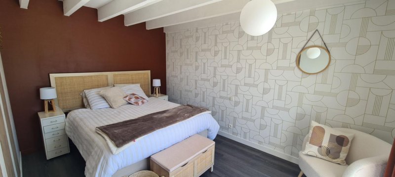 A l'étage, vous trouverez 1 mezzanine, 2 chambres et un très grand espace (bureau, salle de jeux ...).