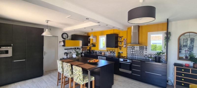 Le rez de chaussée comprend un vaste séjour de 60 M², très lumineux, avec une cuisine ouverte entièrement équipée, 2 chambres, 2 salles d'eau avec toilettes et une arrière cuisine.