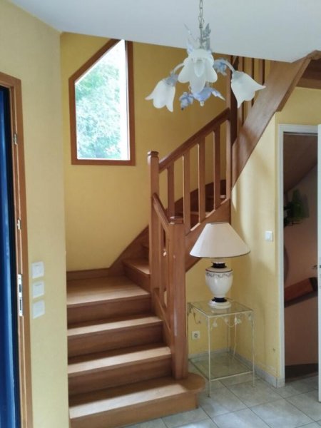 à l'étage : couloir avec placards, 3 chambres avec placards, salle de jeux, salle de bains (baignoire, lavabo), wc séparé