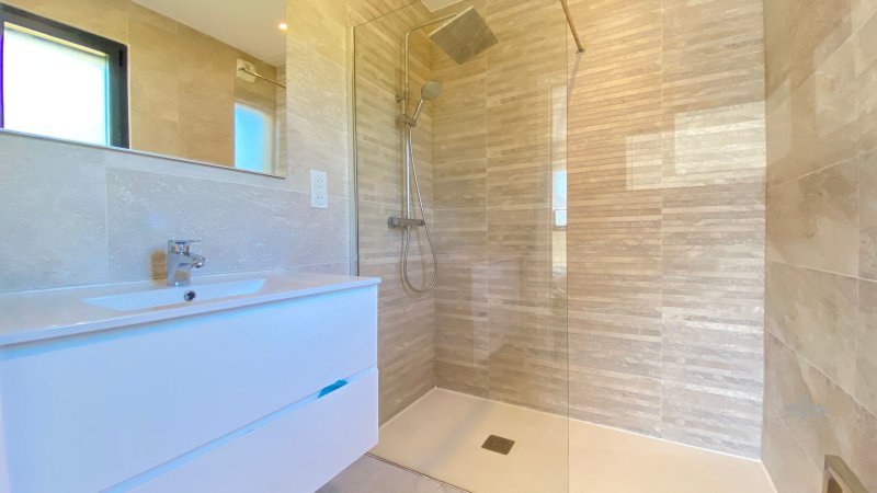 Cette maison offre de belles prestations : un jardin clos et paysagé, une toiture en ardoises naturelles, un chauffage par le sol, de jolies finitions et un cadre de vie très agréable